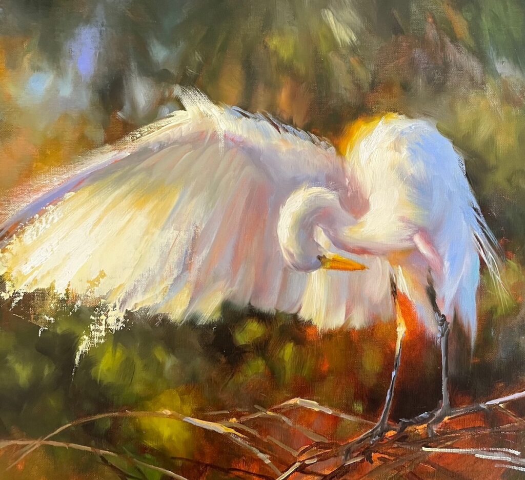 Her success in the art world has come from her winning combination of creative spark and imaginative nature along with her strong desire to evoke a feeling in her paintings . Michelle’s passion for wildlife and its ecosystems brought her to embrace the natural world through painting en plein air.