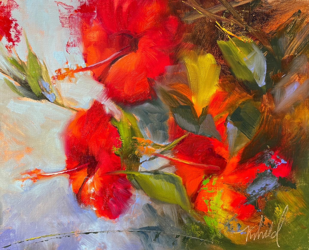 Michelle believes that evoking a feeling of light, space, and passion is the key to any successful contemporary painting. Michelle gives attention to composition, design and value and gives credence to a “go with the flow” attitude as well, and lets the painting direct her, instead of imposing her will on it throughout the entire process.